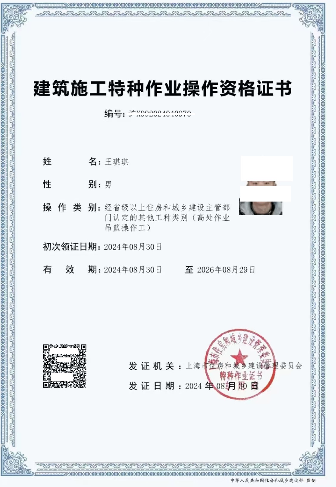 考核发证:颁发由“上海市城乡建设和交通委员会”颁发的特殊工种作业操作证。考核通过后自行下载电子版证书。